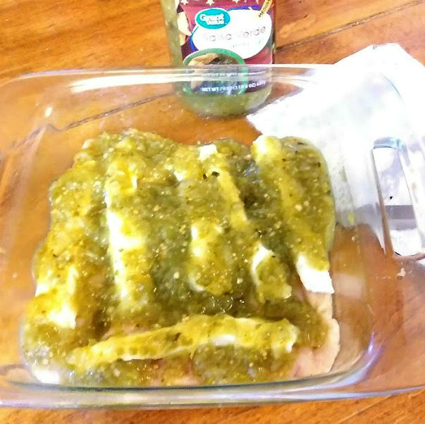 Do you ever see a picture of a food dish that looks really good and you really want to make it, but you aren’t sure if you would like it? After scanning a few versions for this recipe, I saw that it was pretty basic and had just a few ingredients. I loved all but one of the ingredients, and I knew that one was the key ingredient for the flavor. The one ingredient that kept me from trying it was the Salsa Verde. I just knew I wasn’t going to like it. One because it was a green sauce, and two because it had jalapenos in it.
