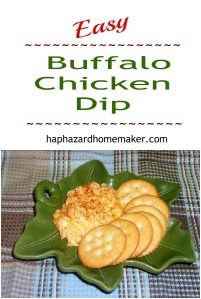 This Easy Buffalo Chicken Dip is the next best thing to Buffalo Wings! Serve with crackers or make stuffed celery pieces. The dip is also amazing as a sandwich spread on dinner rolls for a tasty little sandwich the next day, if you happen to have any leftover.