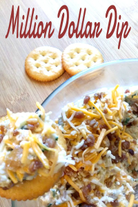 This Million Dollar Dip is super easy to make and is always a huge hit. Serve it with Ritz crackers or spread on tortillas and roll up for pinwheels. Leftover dip and pinwheels will both easily last a few days in the fridge.