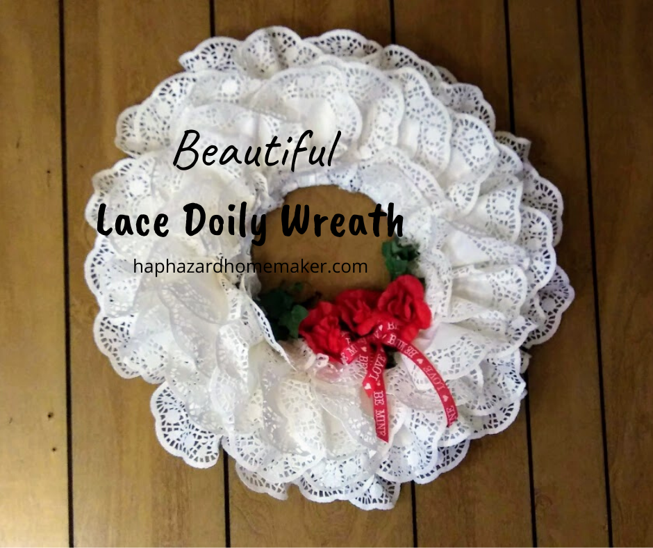 I did make this paper doily wreath for Valentine’s Day, however it would also be lovely hanging over a fireplace in a rustic living room (as shown in the inspiration post). It would also be gorgeous using tea-stained doilies. Imagine how sweet it would be hanging in a little girl’s bedroom!