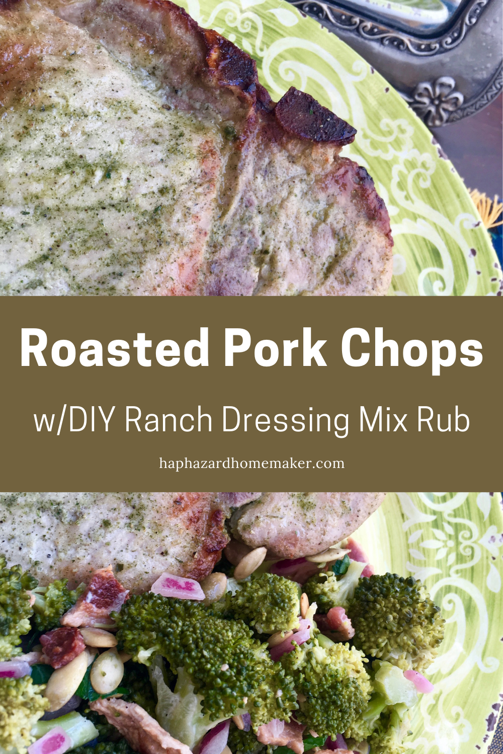 - Rub pork chops with 1-2 tablespoons dry ranch seasoning (divided evenly among all 4 chops), until coated. (Store remaining ranch seasoning in an airtight container for later use).