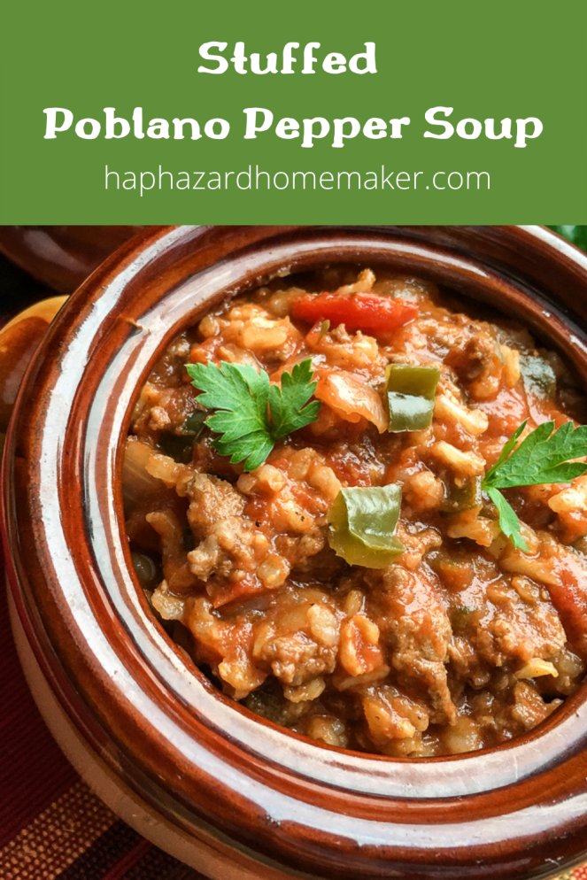 I love soup season and this hearty Instant Pot Stuffed Poblano Pepper Soup doesn’t disappoint! It’s a nice change from regular pepper soup made with bell peppers. Poblano peppers are popular in Mexican and Southwestern cooking, I think most notably for Chili Rellenos. Poblanos don’t have much of a bite, but this recipe can certainly be given a kick with a little extra seasoning.
